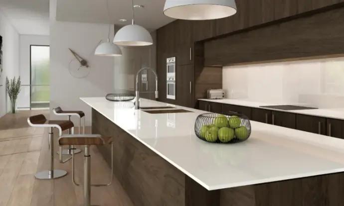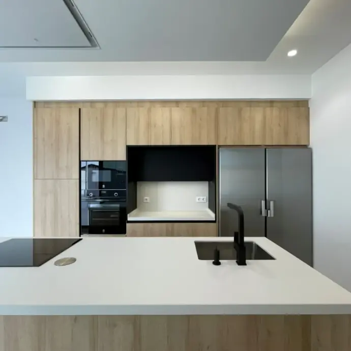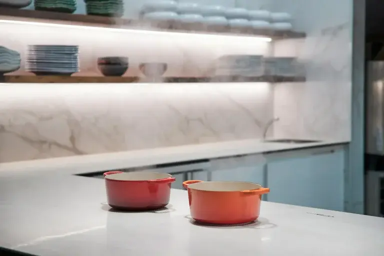 Gracias a su gran versatilidad, se adapta a estilos que van del minimalista al clásico, siendo una solución segura para encimeras, revestimientos y mobiliario arquitectónico. Al combinarse con tonos oscuros como el Grum Black, permite crear el icónico contraste Black & White, convirtiéndolo en un elemento esencial y elegante para cocinas y espacios comerciales.