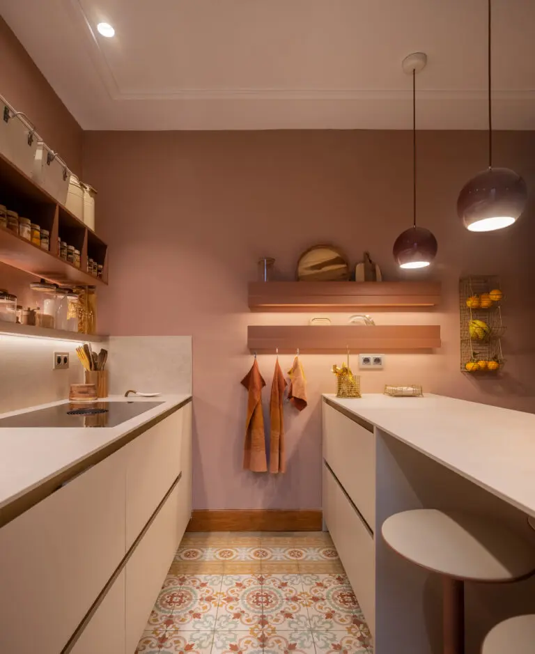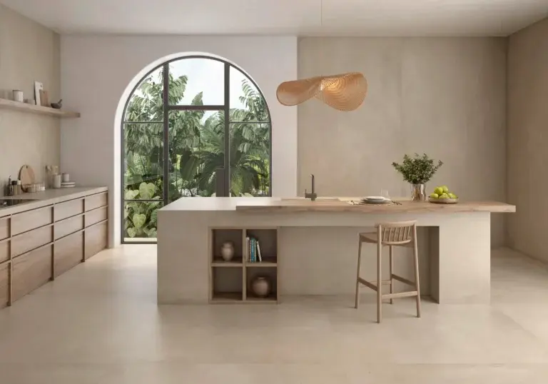Este material aporta a los espacios una luminosidad envolvente y una calidez orgánica que invita a la tranquilidad y al confort. Es una opción ideal para la cocina y otras estancias donde se busca crear atmósferas acogedoras y serenas.
