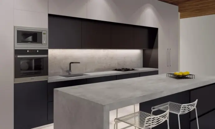 La neutralidad de su tono gris facilita su integración con otros materiales. Combina a la perfección con maderas naturales, metales oscuros y toques de color vibrante, lo que lo convierte en una opción ideal para estilos minimalistas, industriales o escandinavos. Cosmopolita Gray es el material perfecto para crear ambientes que fusionan la estética contemporánea con la funcionalidad.