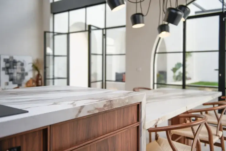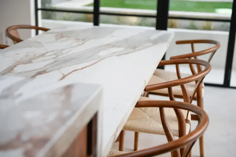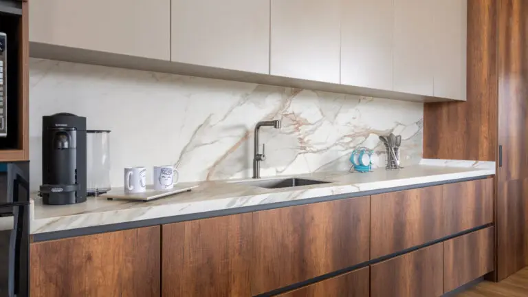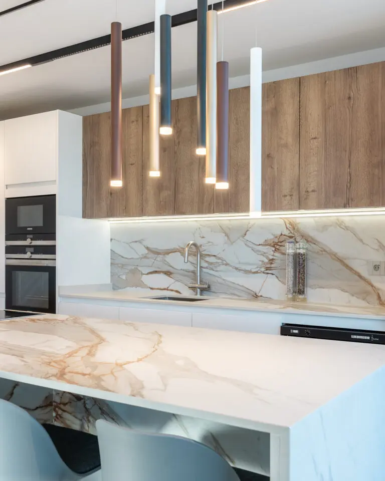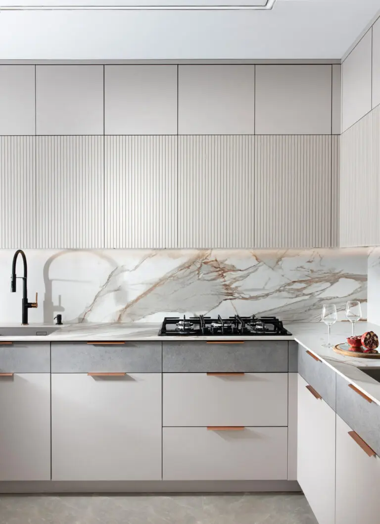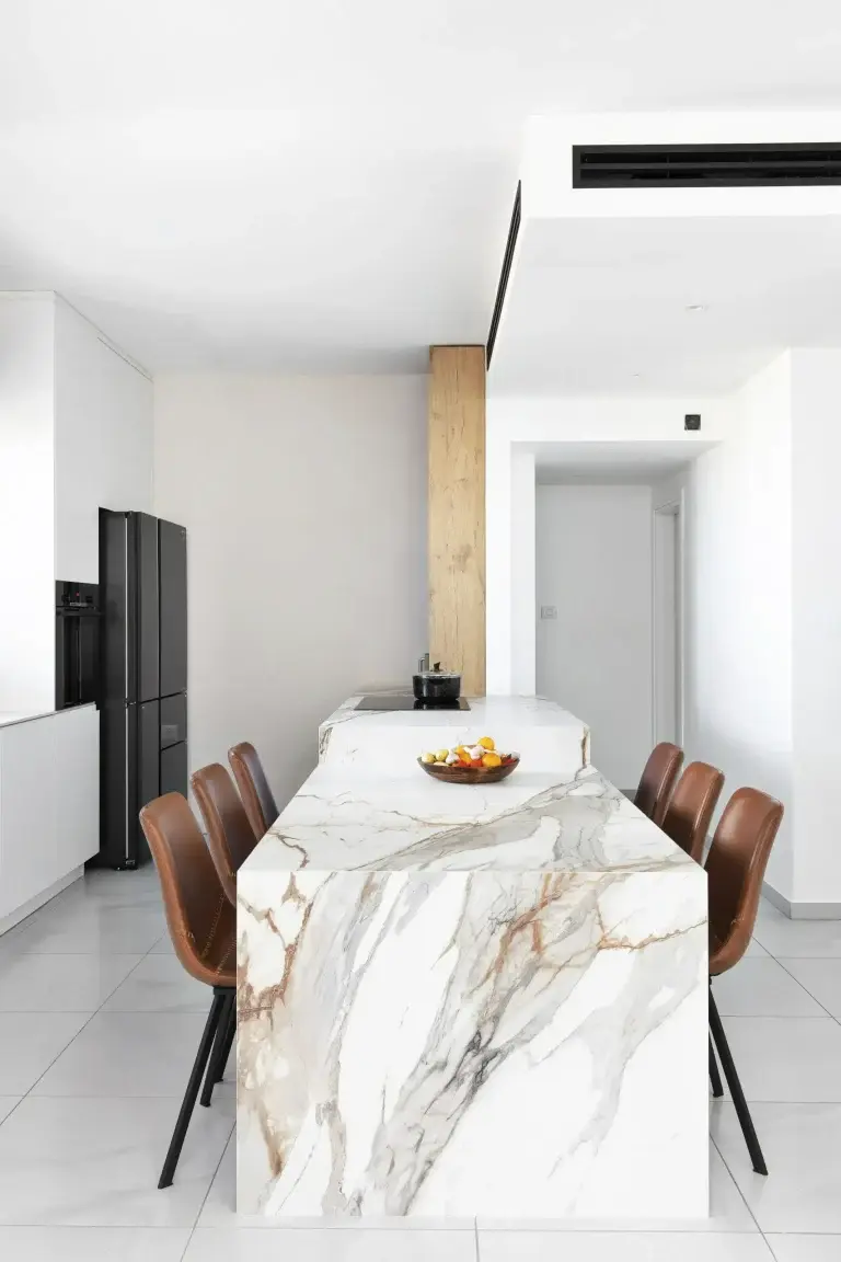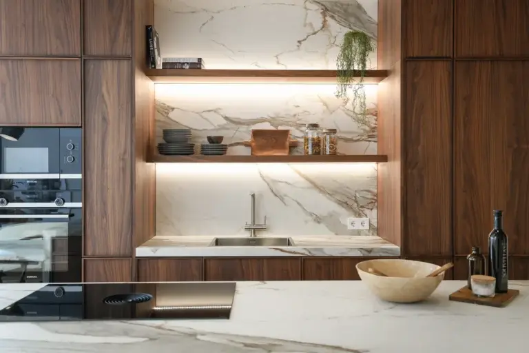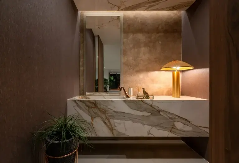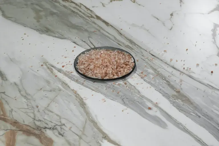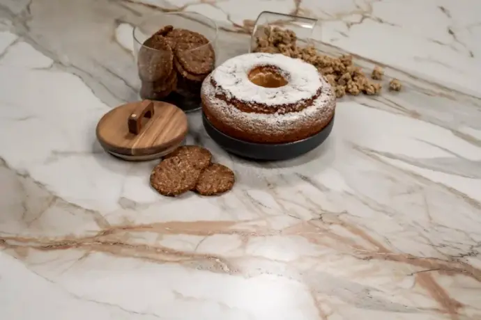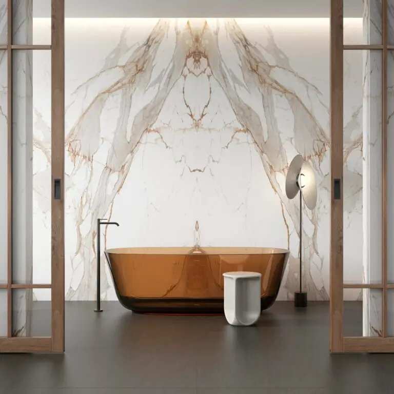 Inspirado en el mármol Macchia Vecchia de las canteras de Carrara, Italia, este modelo destaca por su fondo blanco marfil y sus intensas vetas grises con reflejos anaranjados. Es un diseño con una gran personalidad, ideal para dotar a los espacios de un carácter distintivo.