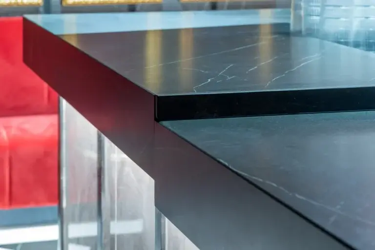 Este material se utiliza cada vez más en espacios interiores, ya que su combinación con otros materiales más claros aporta el punto de glamour que se busca en el sector comercial y minorista.