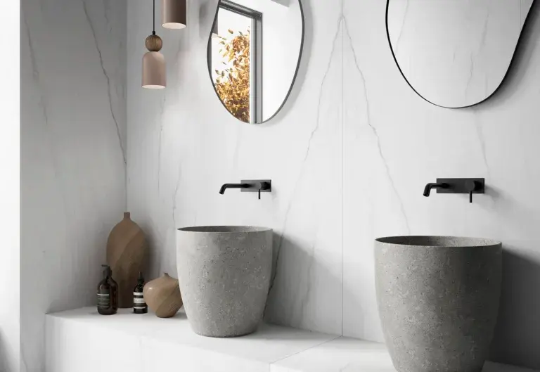 Montblanc está inspirado en una cuarcita brasileña blanco rota con vetas grises que ofrecen luminosidad y sofisticación a la cocina o el baño donde se instale.
