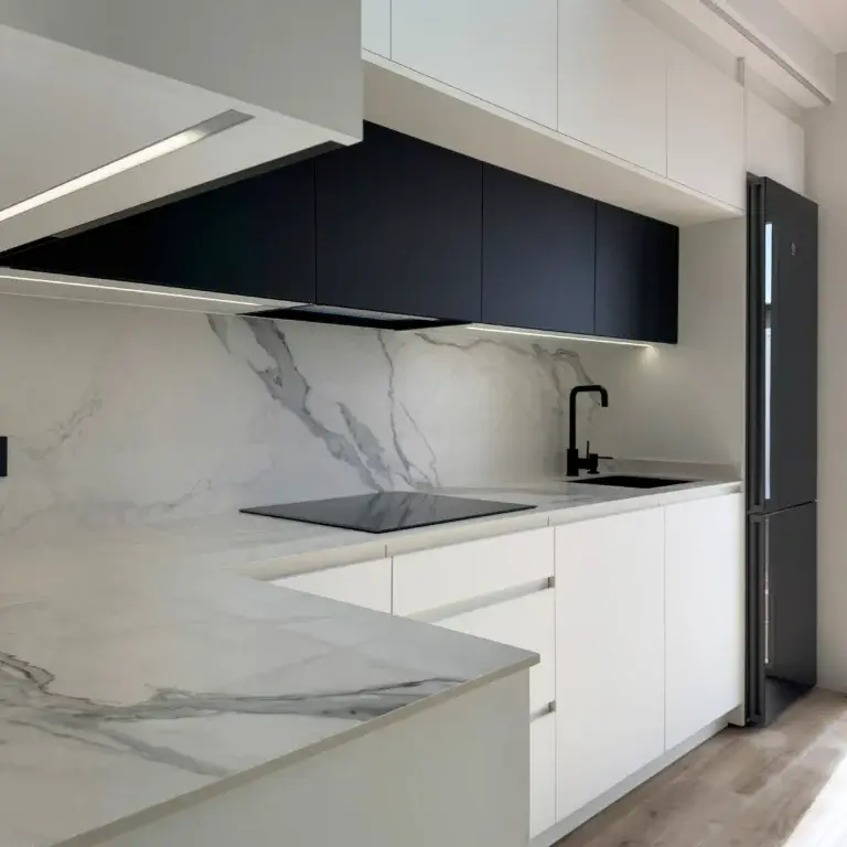 Inspirado en la piedra natural de las canteras de Italia, New Torano Statuario es una reinvención de un clásico del mármol, ideal para aportar un toque de elegancia y lujo a los espacios. Su veteado permite la creación de murales con efecto bookmatch al colocar las piezas una junto a la otra. De esta forma, se consigue un carácter distintivo en salones, comedores, cocinas y baños.