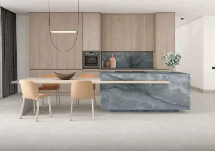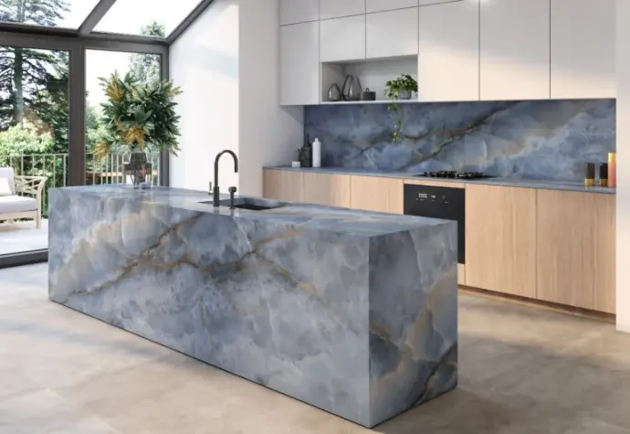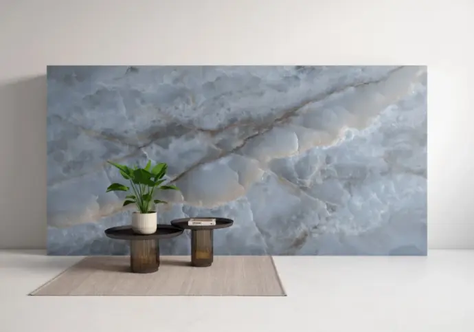 Onice Blue es la máxima expresión de elegancia y profundidad, inspirada en los matices envolventes del cielo. Su impactante tono azul, rico en sensaciones, transmite una sensación de misterio y serenidad, como si capturara la inmensidad en una superficie mineral. Las sutiles vetas que cruzan su estructura le otorgan un dinamismo delicado, generando juegos de luz que enriquecen su estética y acentúan su carácter exclusivo.