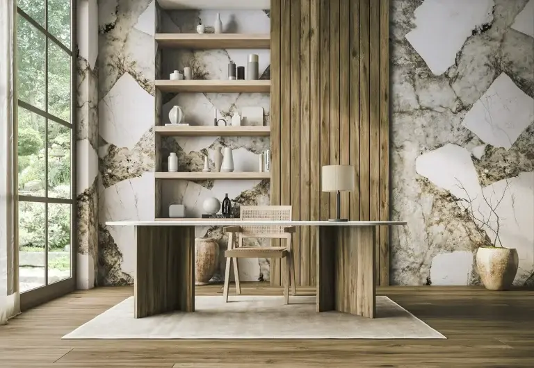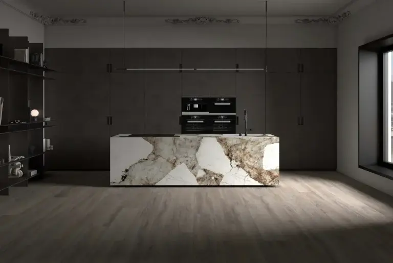 Este diseño no presenta vetas tradicionales, sino estructuras minerales que evocan formaciones geológicas milenarias, lo que hace de cada pieza una obra de arte única e irrepetible. Patagonia aporta un carácter escultórico y exclusivo a cualquier espacio, convirtiéndose en una declaración de sofisticación y estilo con un fuerte vínculo con la naturaleza.