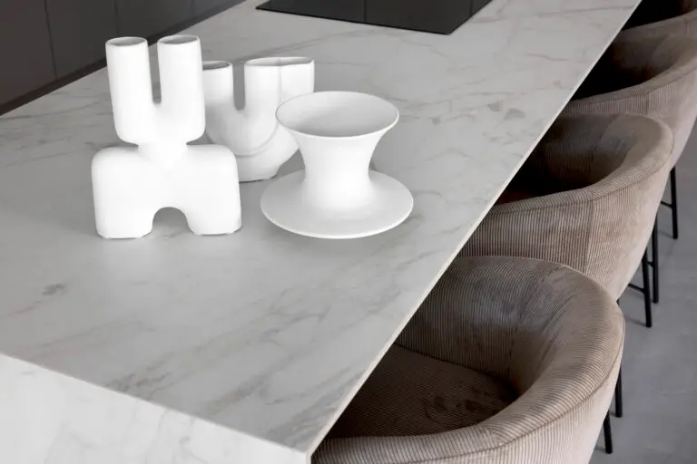 Extraído de las mejores canteras de Italia, Vagli Gold es una reinvención del clásico mármol Calacatta. Su diseño único presenta un fondo blanco puro y un delicado veteado, que se enriquece con destellos dorados. Este contraste aporta una calidez inesperada y transforma cada pieza en algo único y reconocible.
